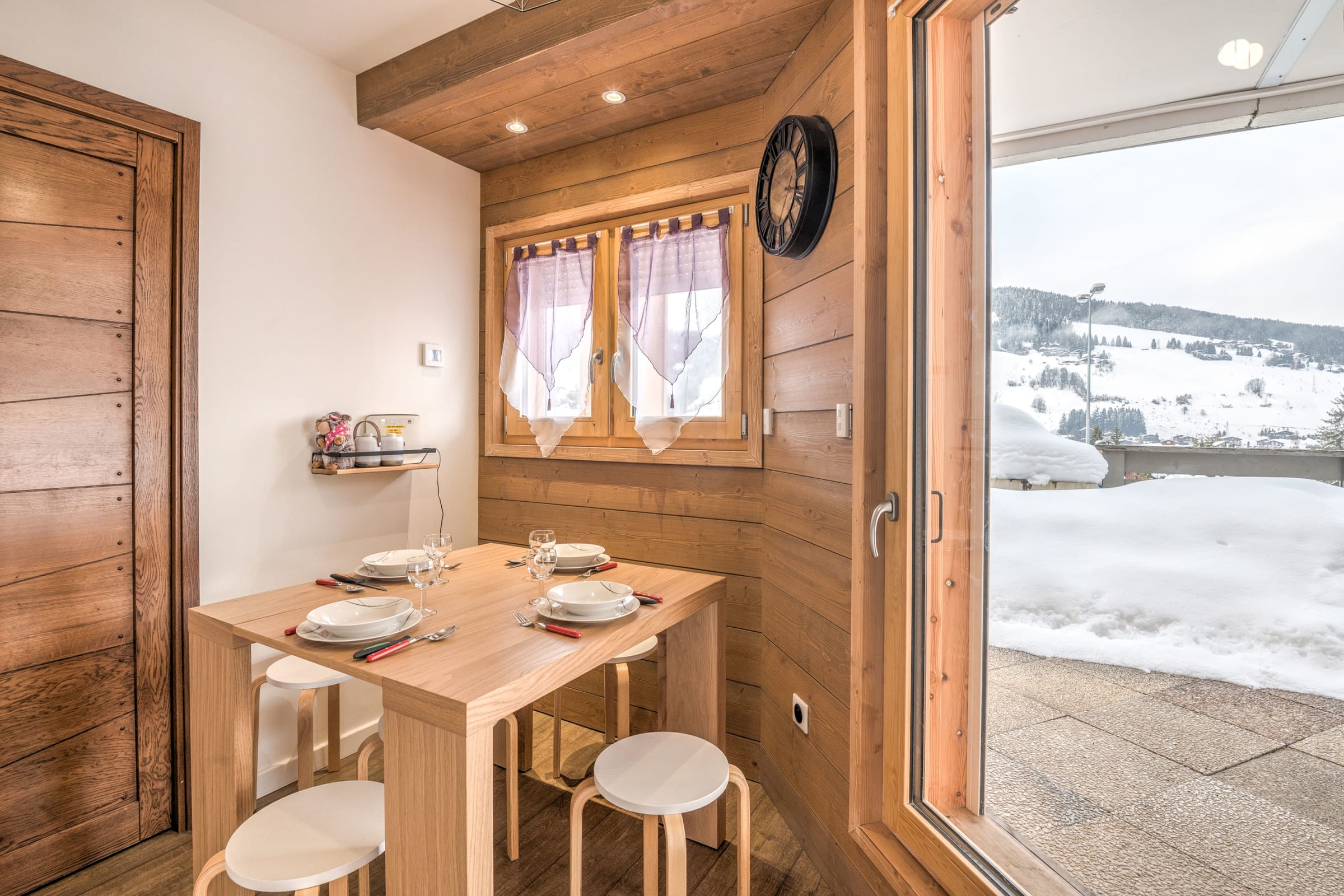 Vous profiterez d’une agréable terrasse avec vue sur les montagnes, idéale pour se détendre après une journée de ski ou de randonnée.