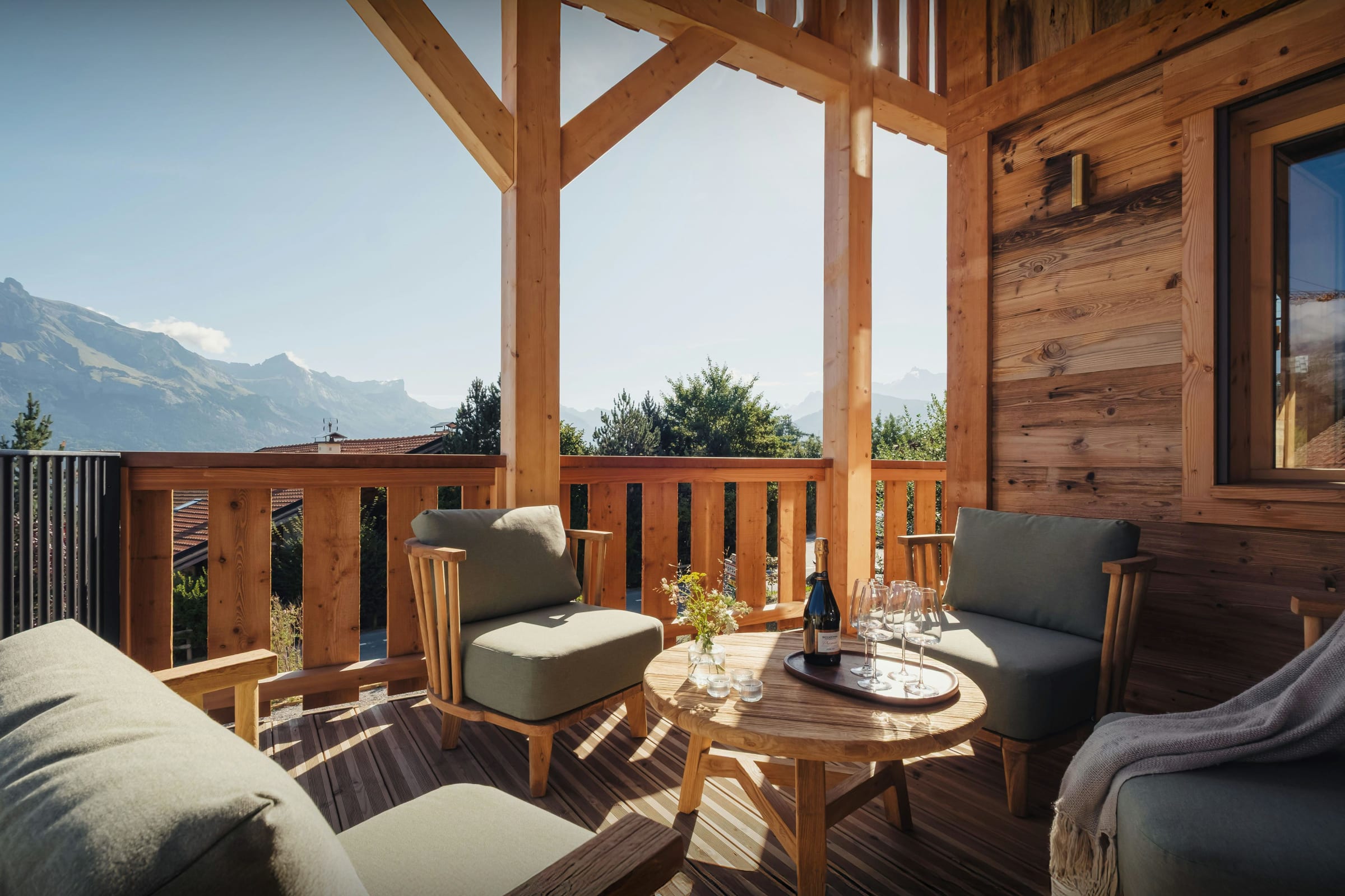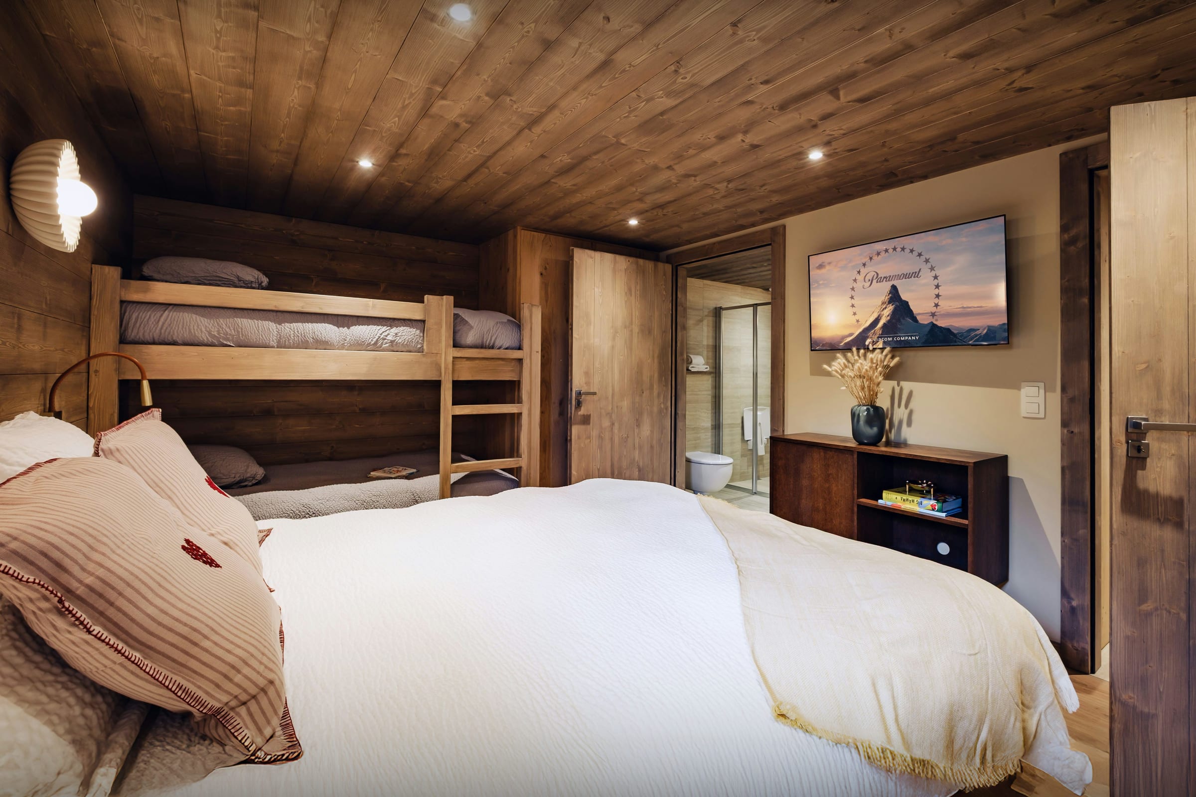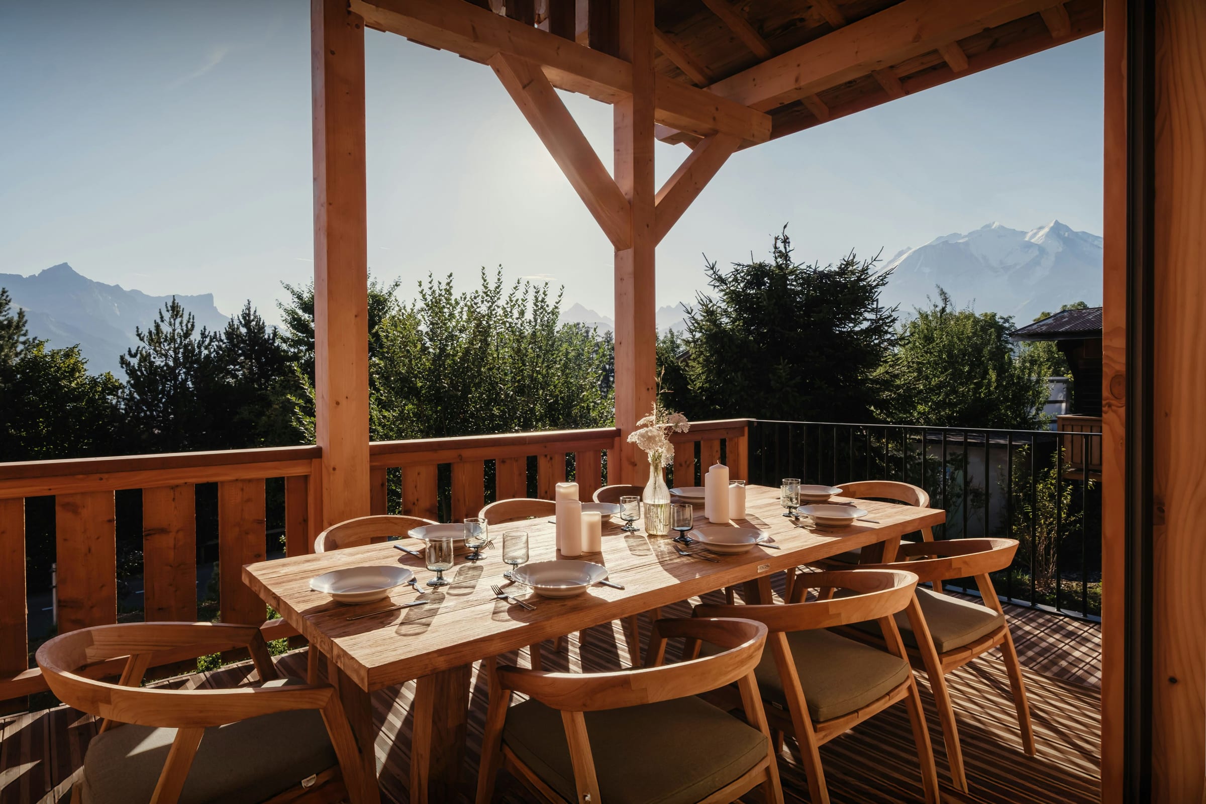 La propriété comprend également un sauna, un jacuzzi, une salle de cinéma, et une terrasse panoramique qui profite au mieux du paysage alpin. Cette dernière offre un espace extérieur très agréable, où vous pourrez y partager vos repas ou bien prendre l’apéritif. Trois des chambres bénéficient également d’un accès direct à un balcon. En été, vous pourrez profiter du jardin et de son terrain de pétanque.