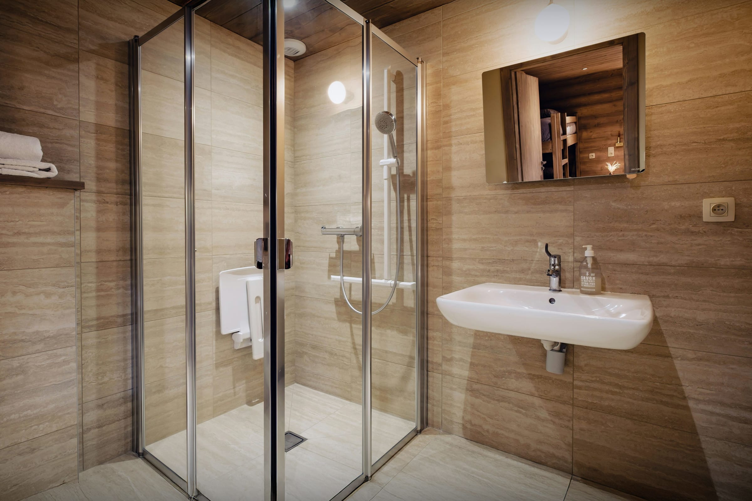 À noter : un ascenseur dessert les trois niveaux du Chalet Galata, et l’une des salles de bains du rez-de-chaussée est accessible aux personnes en fauteuil roulant.