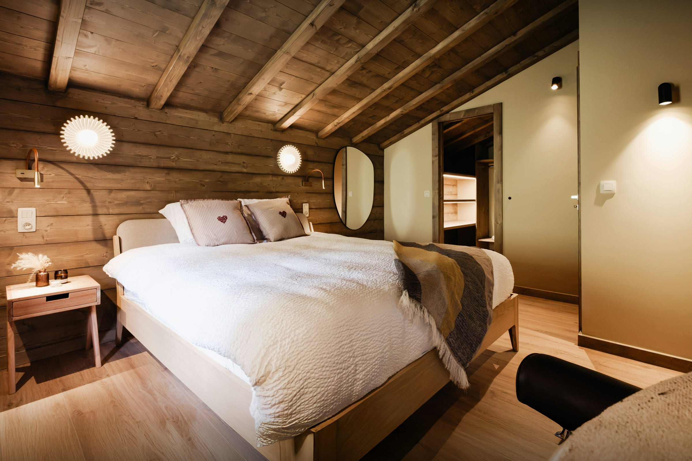 Avec cinq chambres et leur cinq salles de bains attenantes, le Chalet Galata a été pensé dans les moindres détails pour offrir confort et bien-être à un groupe de 12 vacanciers. Il se situe à moins de 20 minutes à pied du centre de Combloux, station animée et authentique de la région du Mont-Blanc.
