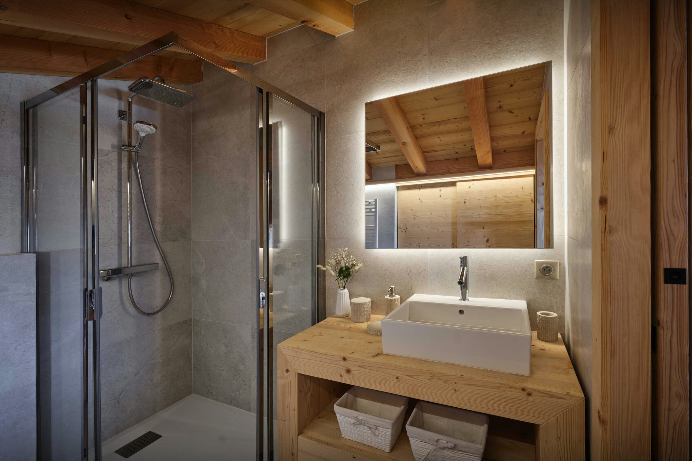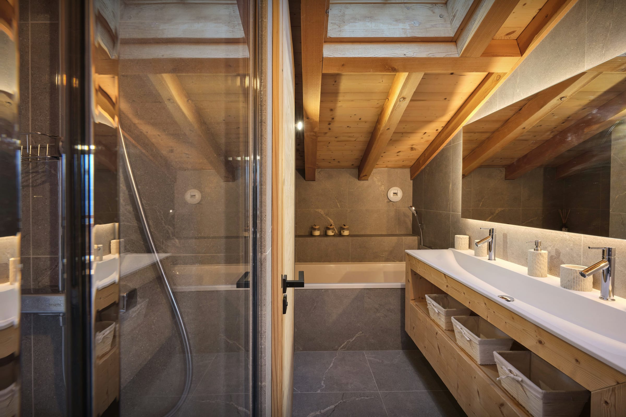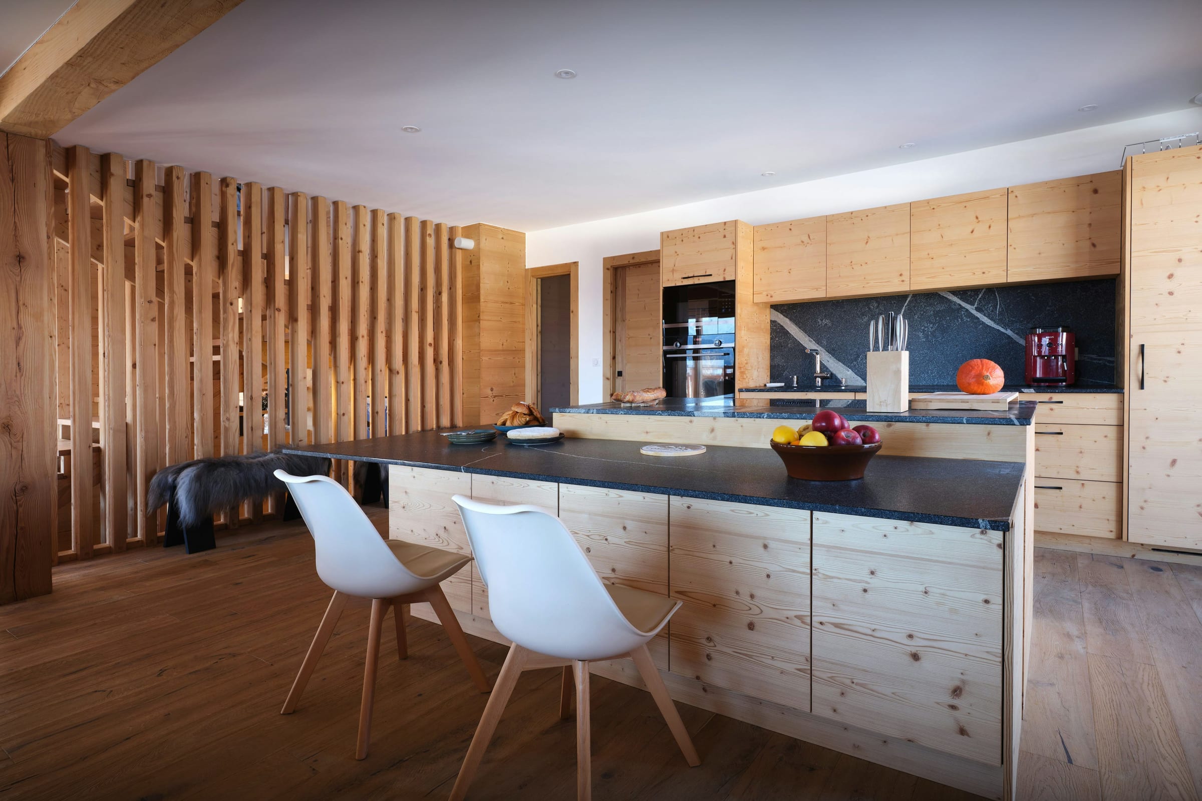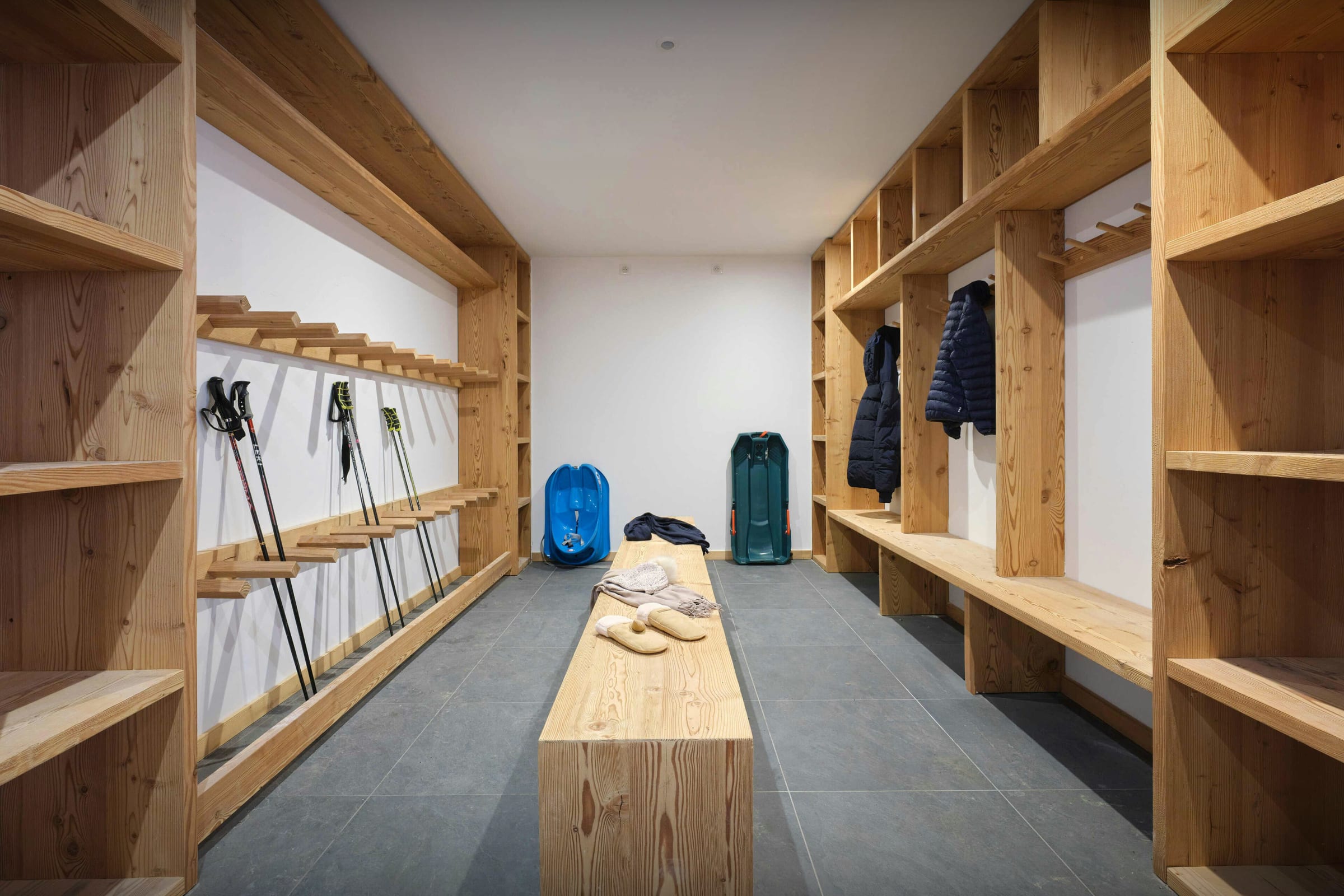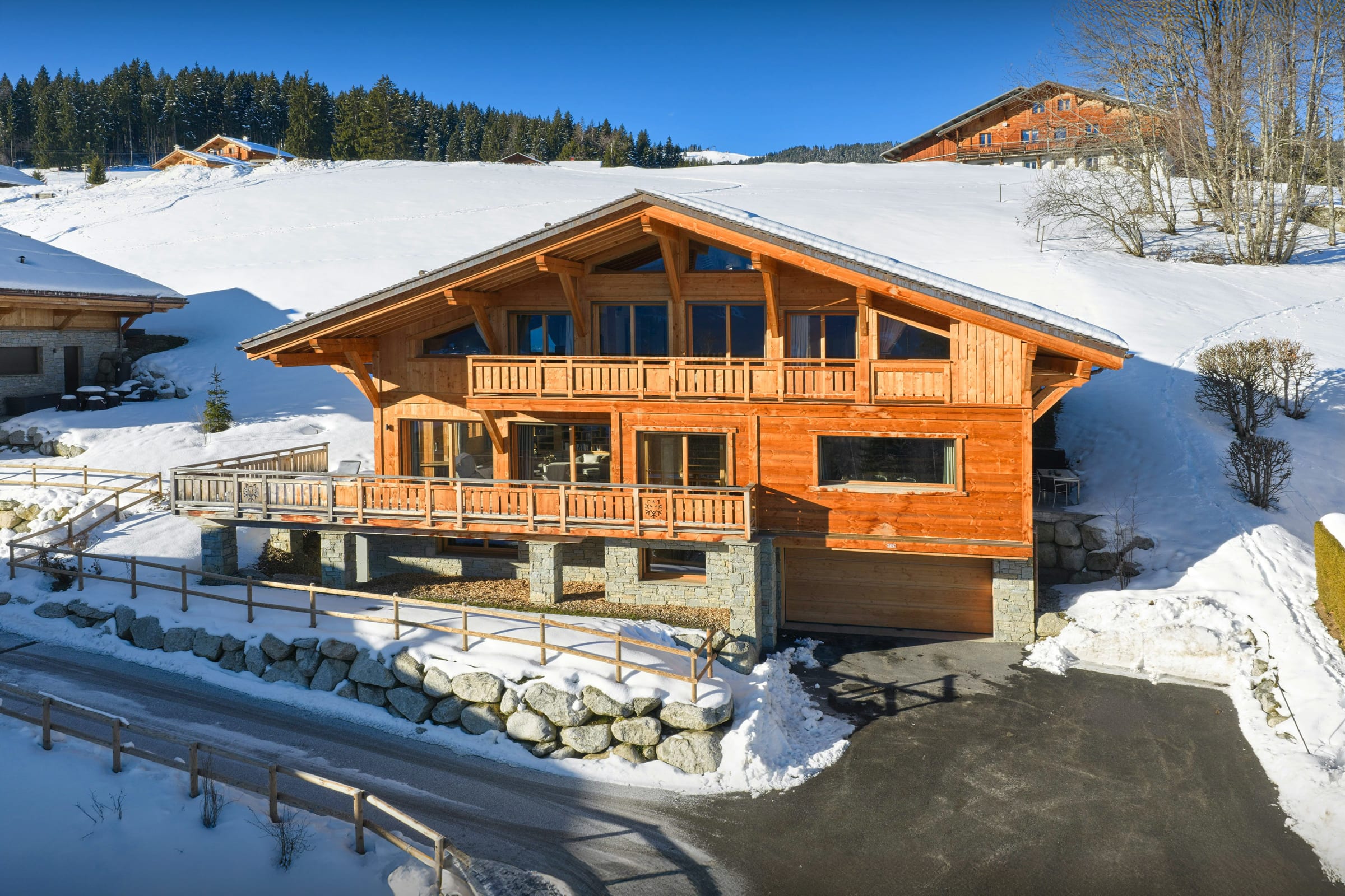 Pensé pour simplifier votre séjour, le chalet dispose également d’un ascenseur, d’une buanderie complète, d’un local à skis et d’un garage, complété par plusieurs places de stationnement extérieures.